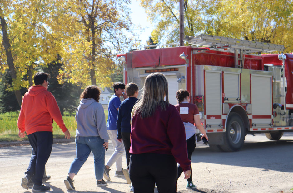 Tous les membres de la caserne de pompiers de Saint-Claude sont bénévoles. Ils ont un emploi à temps plein, mais lorsqu’il y a une urgence, ils quittent leur travail pour aider la communauté. De plus, ils passent du temps ensemble toutes les deux semaines pour créer un bon esprit d’équipe et pour faire de l’entraînement physique avec leurs équipements. Notre communauté est rurale, donc sans une caserne de pompiers et des bénévoles, ça pourrait prendre trop de temps pour obtenir de l’aide en cas d’urgence. Beaucoup de membres de notre caserne ont des liens familiaux avec des élèves de notre école.